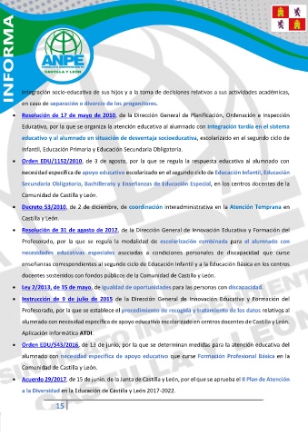 • Orden EDU/1152/2010, de 3 de agosto, por la que se regula la respuesta educativa al alumnado con